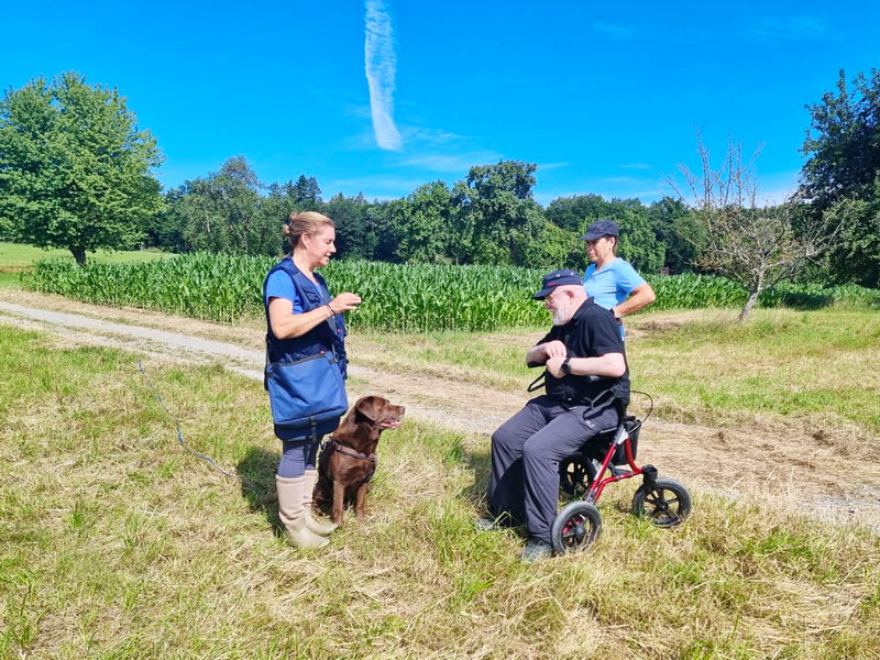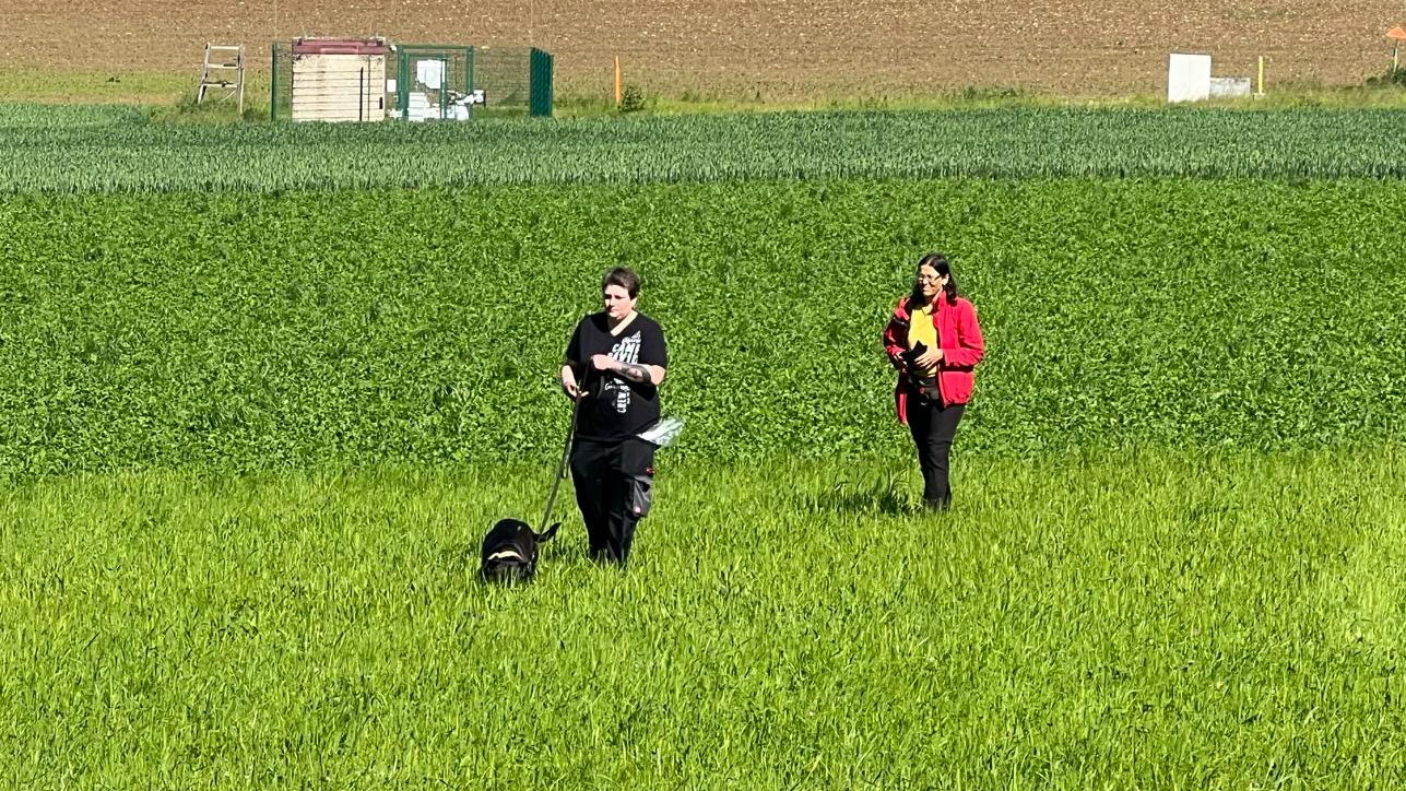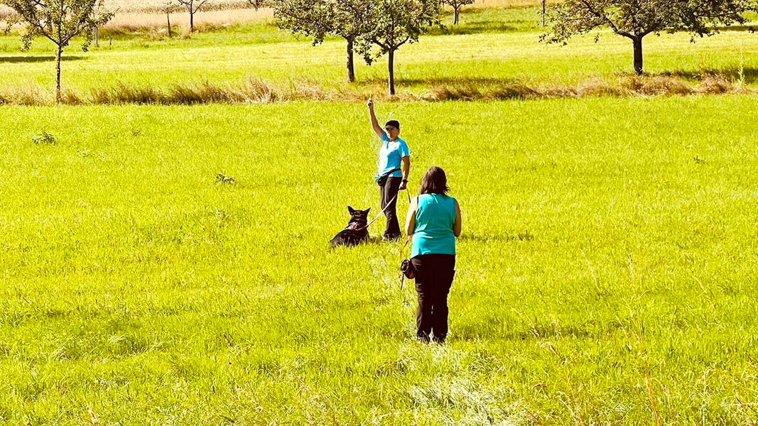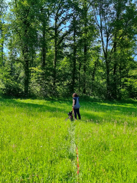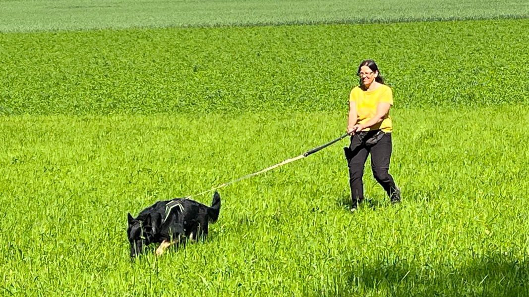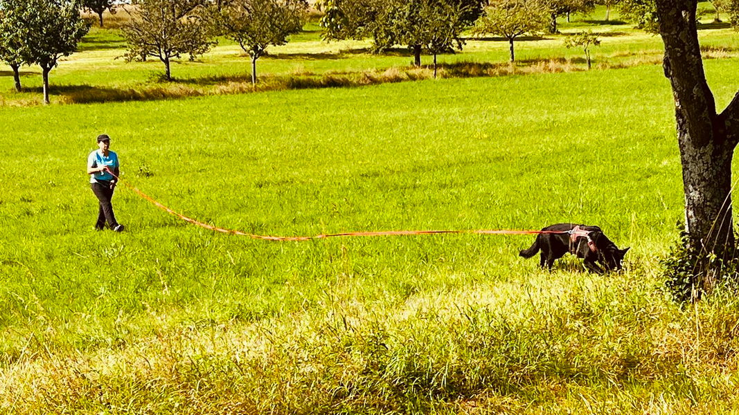 Bei der Chipkontrolle (siehe Foto) konnte Jürgen auch keinen Chip feststellen. Wir haben ihn aber trotzdem in die Fährtengruppe aufgenommen. |
