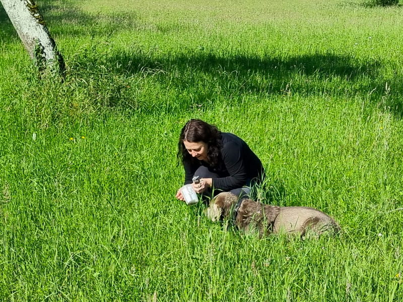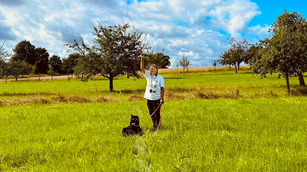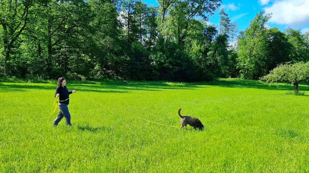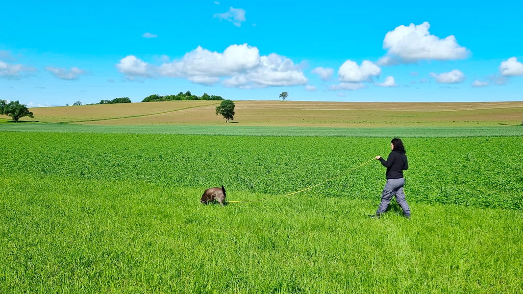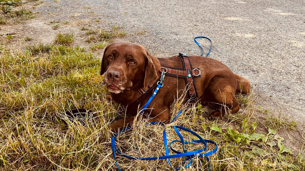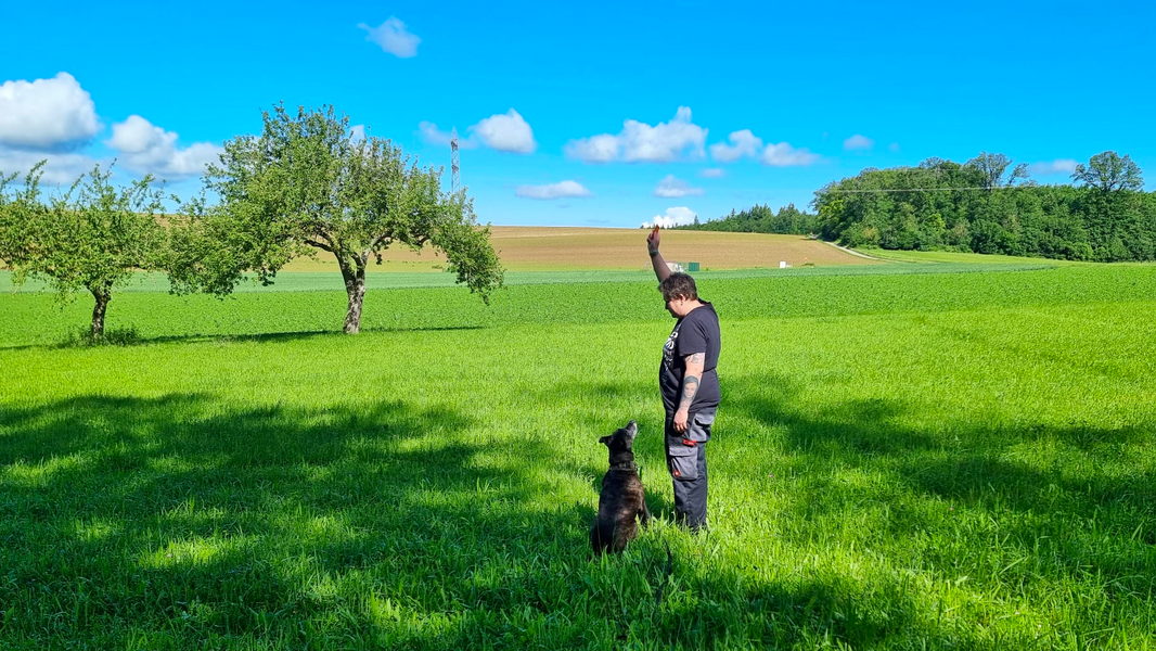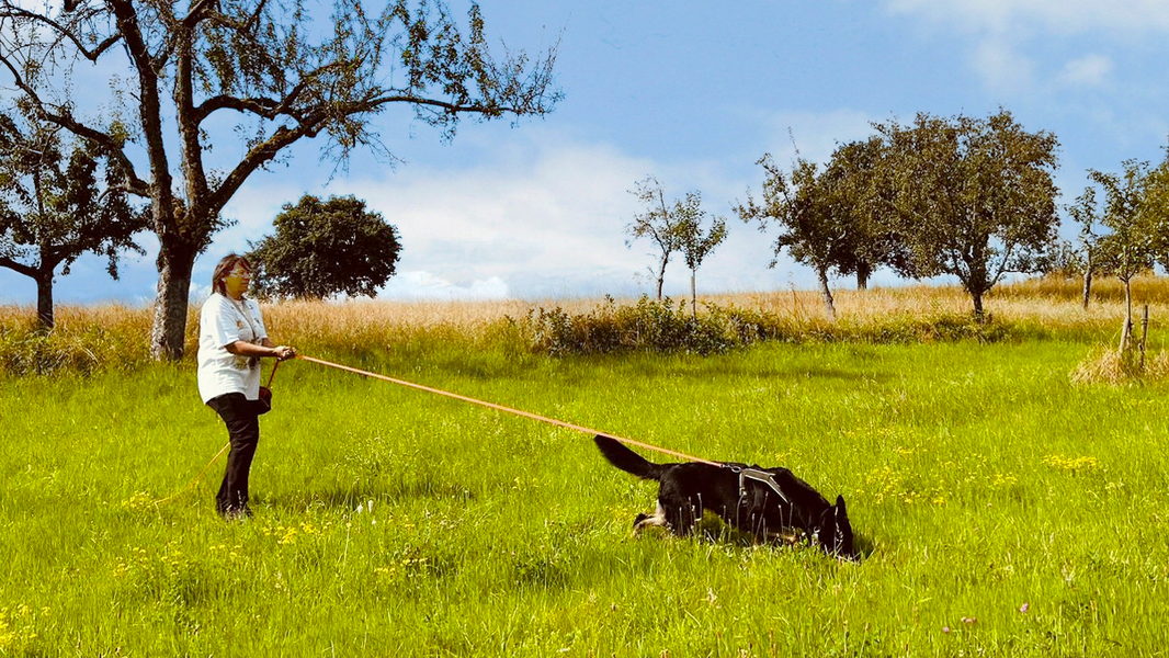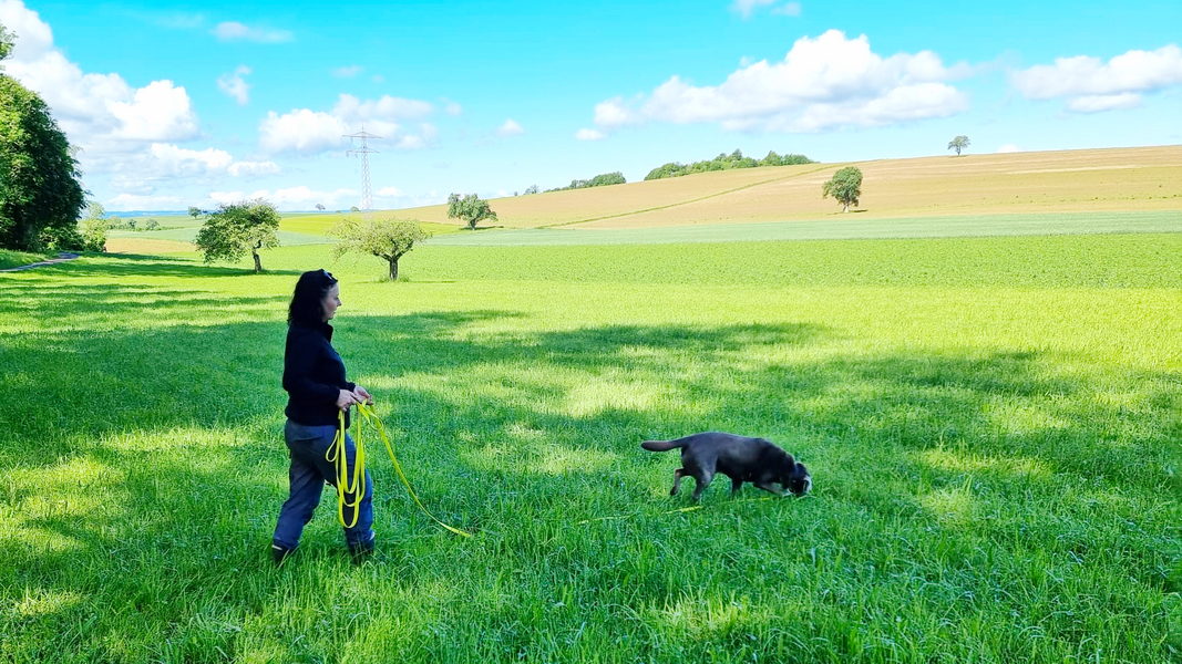 Petra hatte von einer ihrer Dienstreisen nach Afrika einen neuen Fährtenhund mitgebracht. Die Hunderasse konnte noch nicht einwandfrei geklärt werden.