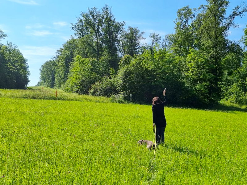 | roter Punkt: Standard-Fährtengelände, roter Kreis: heutiges Ausweich-Fährtengelände |