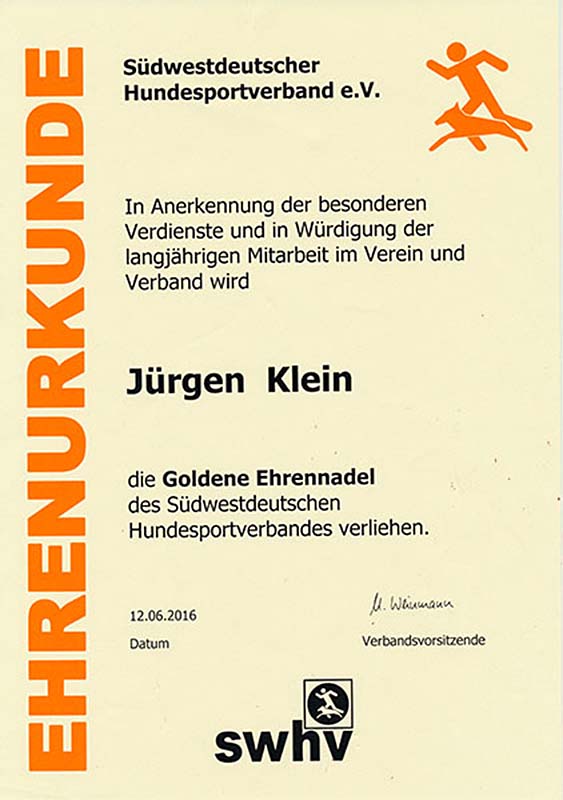 2001 VDH Goldene Hundeführer-Sportabzeichen |